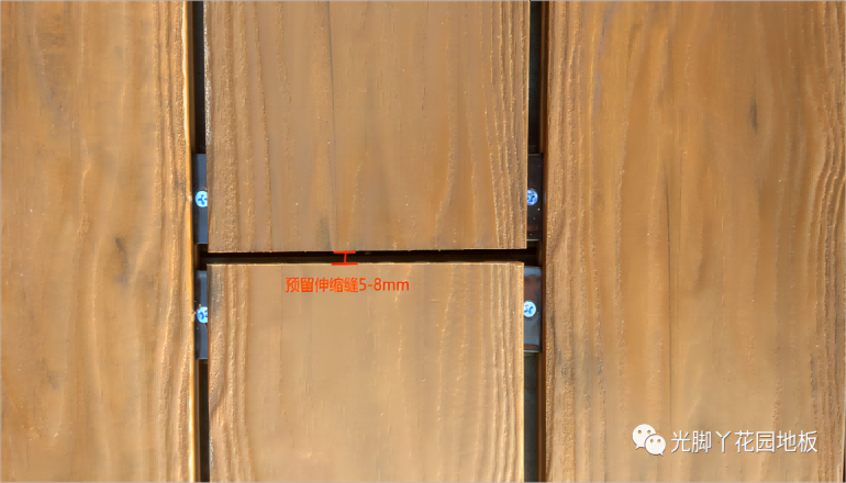 户外地板在安装时必须预留伸缩缝以防止出现热胀冷缩而导致的变形翘曲。