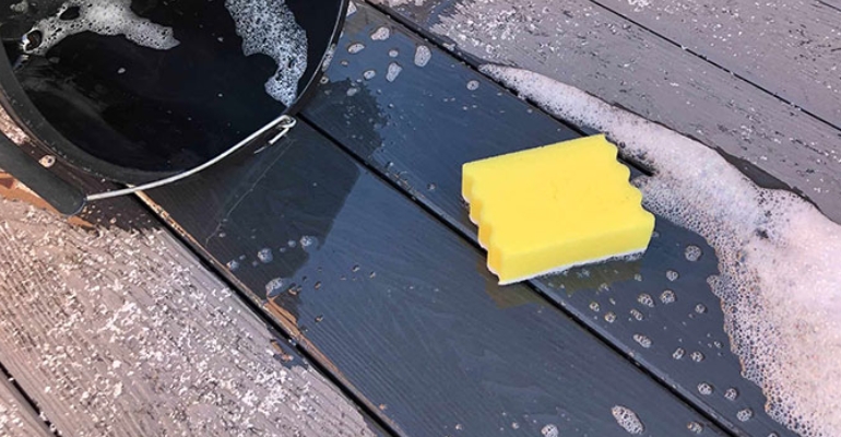 如果地板上的污渍比较顽固,比如烧烤残留的油性污渍、油脂、红酒、口香糖等;可以采用更专业的清洗剂来进行清洁,在使用前务必在角落中的一小片区域先进行测试,确保不会破坏户外地板表面再进行大面积清洗。